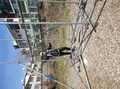 사진에서와 같이 강관비게를 설치하는 작업입니다.